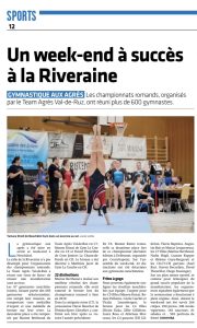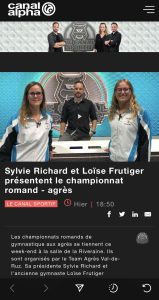 Notons que le CR22 et le Team Agrès Val-de-Ruz ont été bien représentés dans la presse et les médias neuchâtelois avant le week-end. Arcinfo (parution 29.09), Canal Sportif (interview 29.09) et Vdrinfo (parution 22.09), tous mettent en avant notre magnifique sport et l’organisation de ce beau week-end gymnique. Pour regarder le reportage en salle de gym et l’interview sur le plateau de Canal Alpha, cliquez sur le lien suivant :  https://www.canalalpha.ch/play/le-canal-sportif/episode/27783/sylvie-richard-et-loise-frutiger-presentent-le-championnat-romand-agres. Un article proposant un compte-rendu du week-end a été publié dans Arcinfo (parution 03.10). RTN a également parlé du CR et des prochains championnats suisses qui auront lieu le 5-6 novembre en individuel et le 12-13 novembre par équipe (interview 02.10) : https://www.rtn.ch/rtn/Sports/Hockey/20221002-La-gym-aux-agres-fait-son-show.html